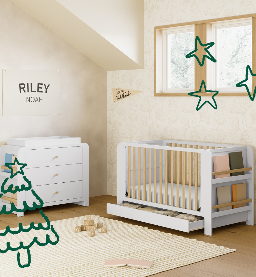 The holidays often come with full calendars, but with a baby, the pace naturally shifts. There’s a quiet kind of magic in staying home, keeping things simple, and soaking in the moment. A familiar sleep space helps keep that calm at the center of it all. The Graco® Read-with-Me® 4-in-1 Convertible Bookshelf Crib with Drawer brings that sense of comfort into the nursery. It’s a place your baby already knows — steady, warm, and soothing when everything else feels new. Keeping the environment simple, with a soft garland or warm nightlight, is often all you need to invite the season in.