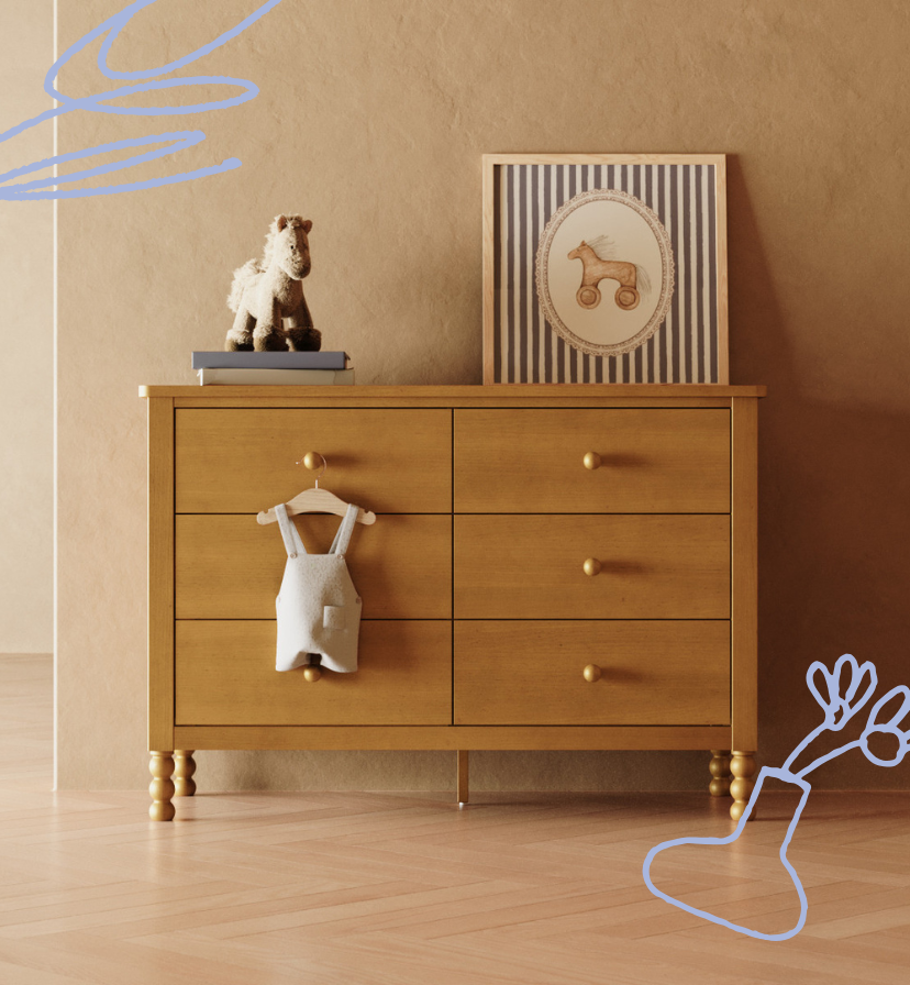 Introducing the Texas — a modern, minimalist dresser designed to keep your nursery organized while maintaining a stylish look that adapts easily to any nursery or kids’ bedroom. Its clean lines, chunky rectangular feet, square-edged shape, understated wooden double knobs, and spacious drawers create a sleek, timeless look that blends with a wide range of decoration styles.
