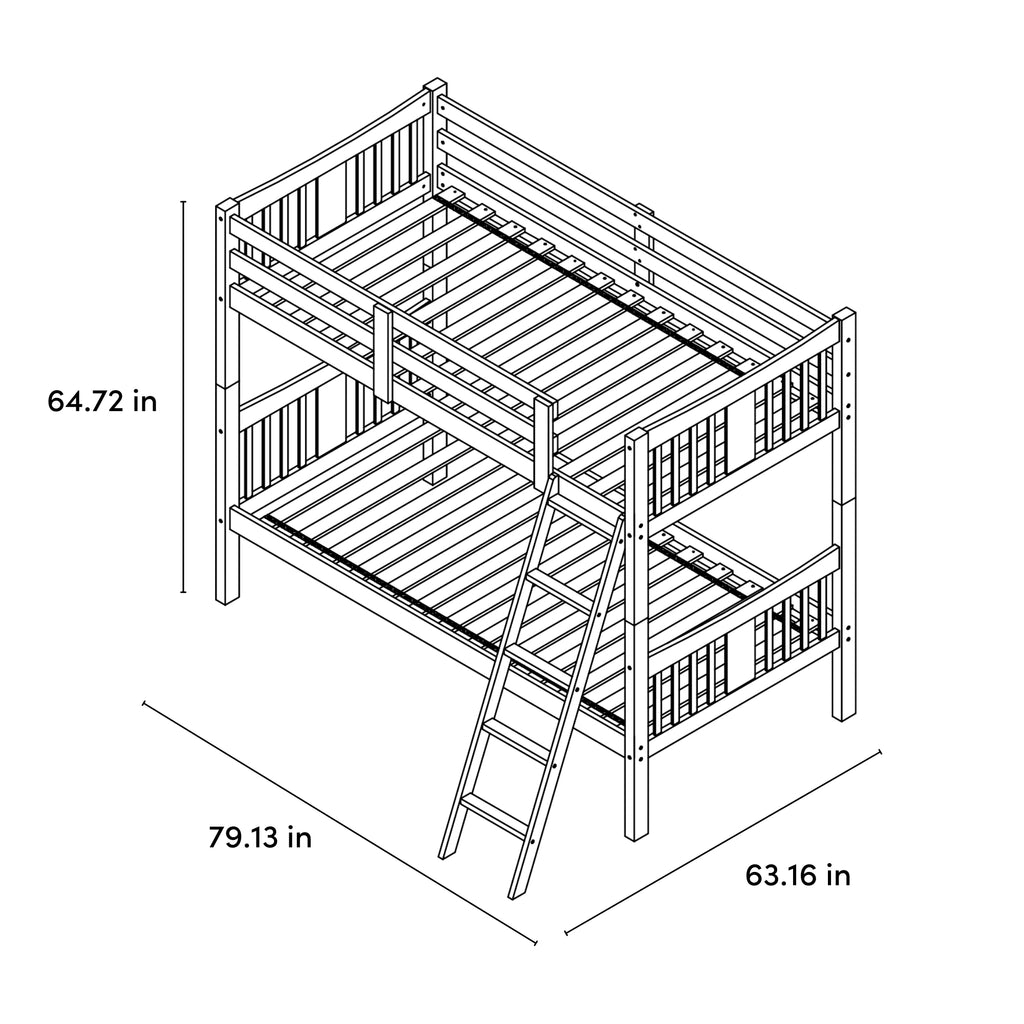 - BUNK BED DIMENSIONS: Depth (63.16 inches) x Length (79.13 inches) x Height (64.72 inches)