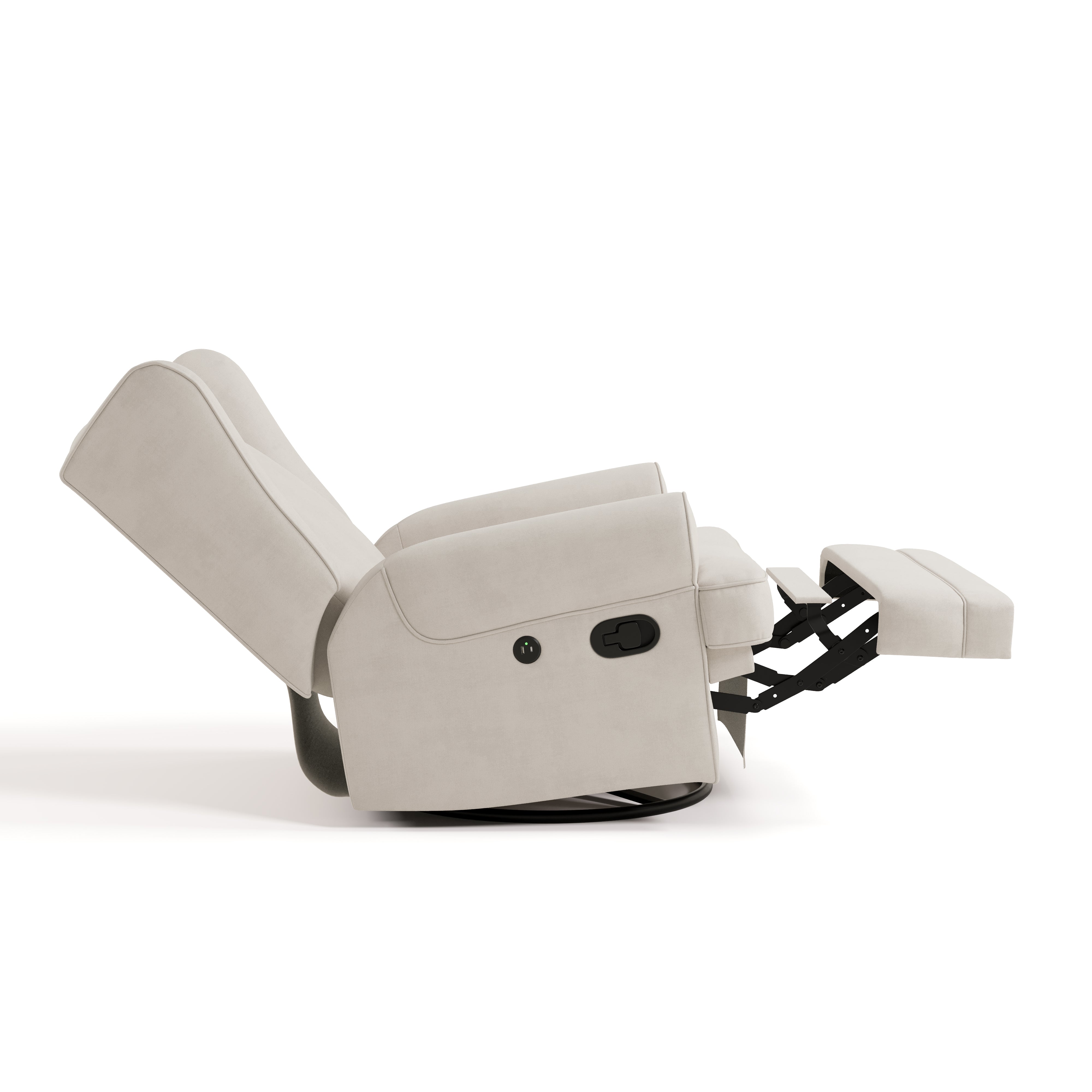 The Serenity Wingback Upholstered Recliner Glider is classic comfort, modern functionality, and nursery chic.