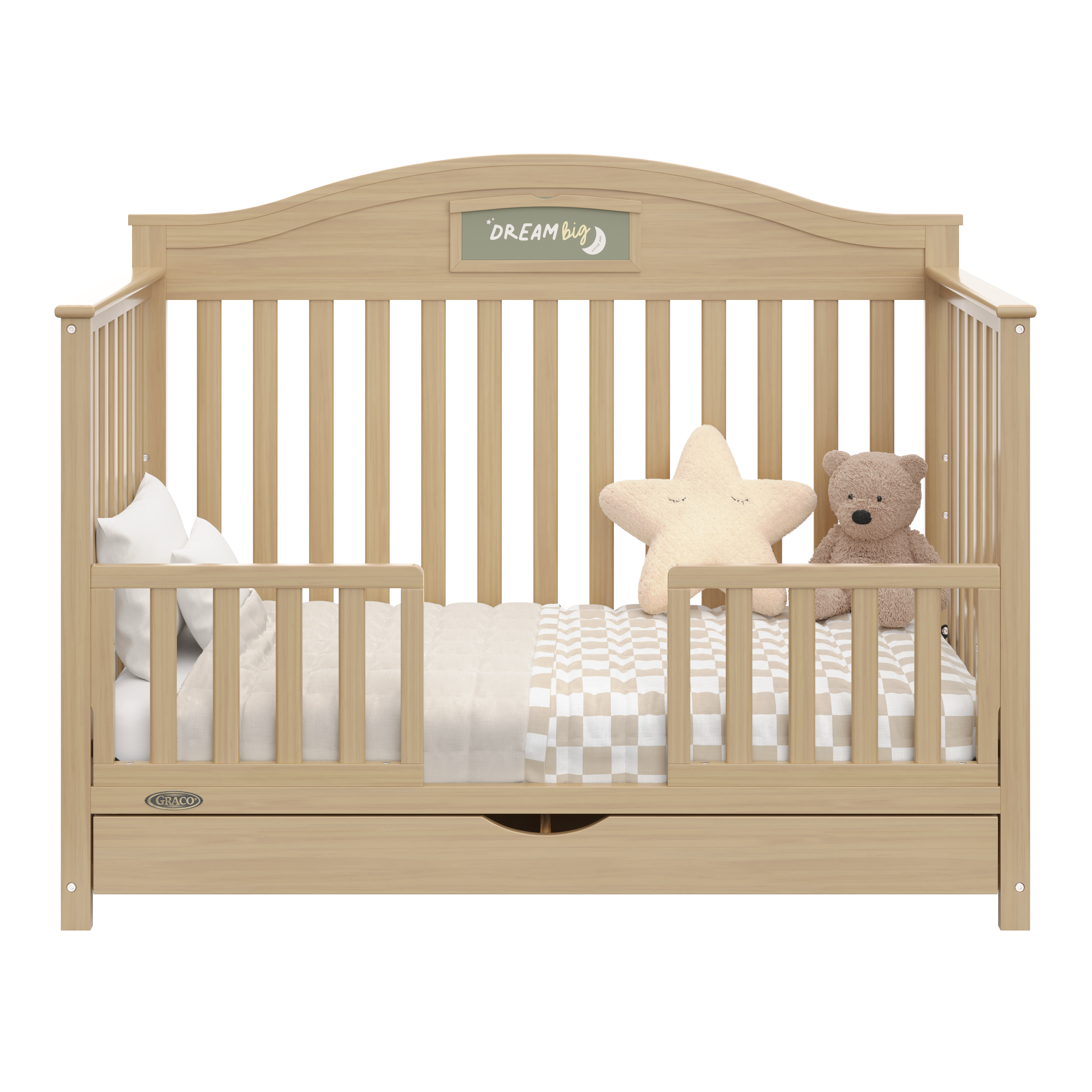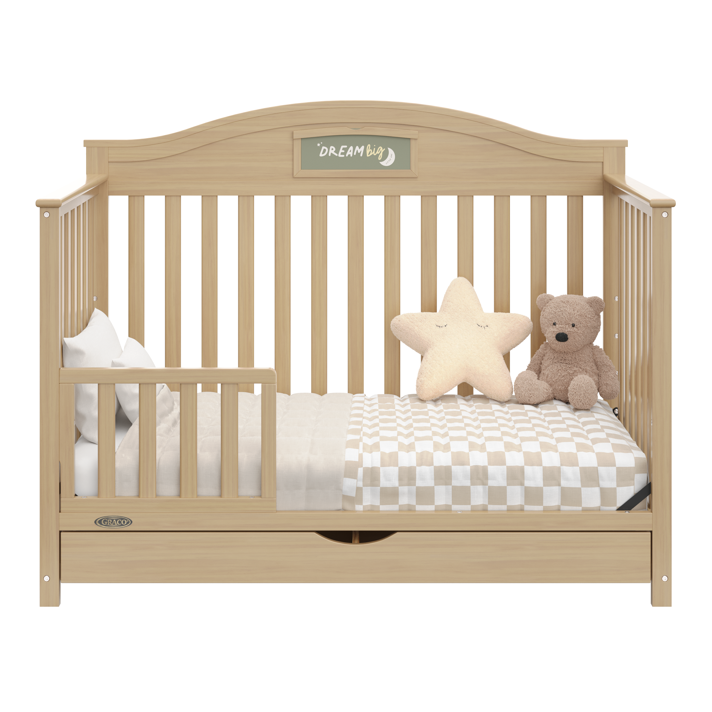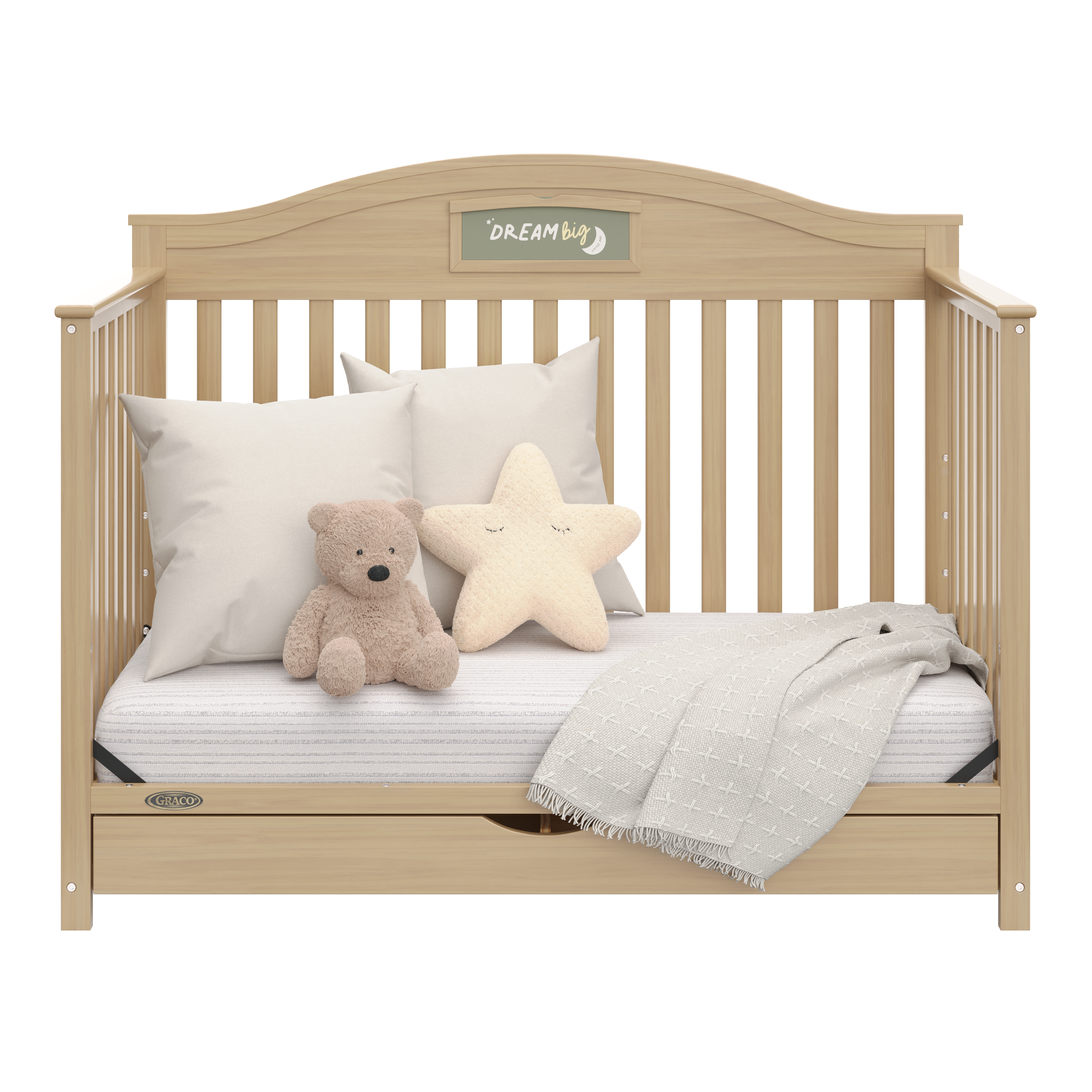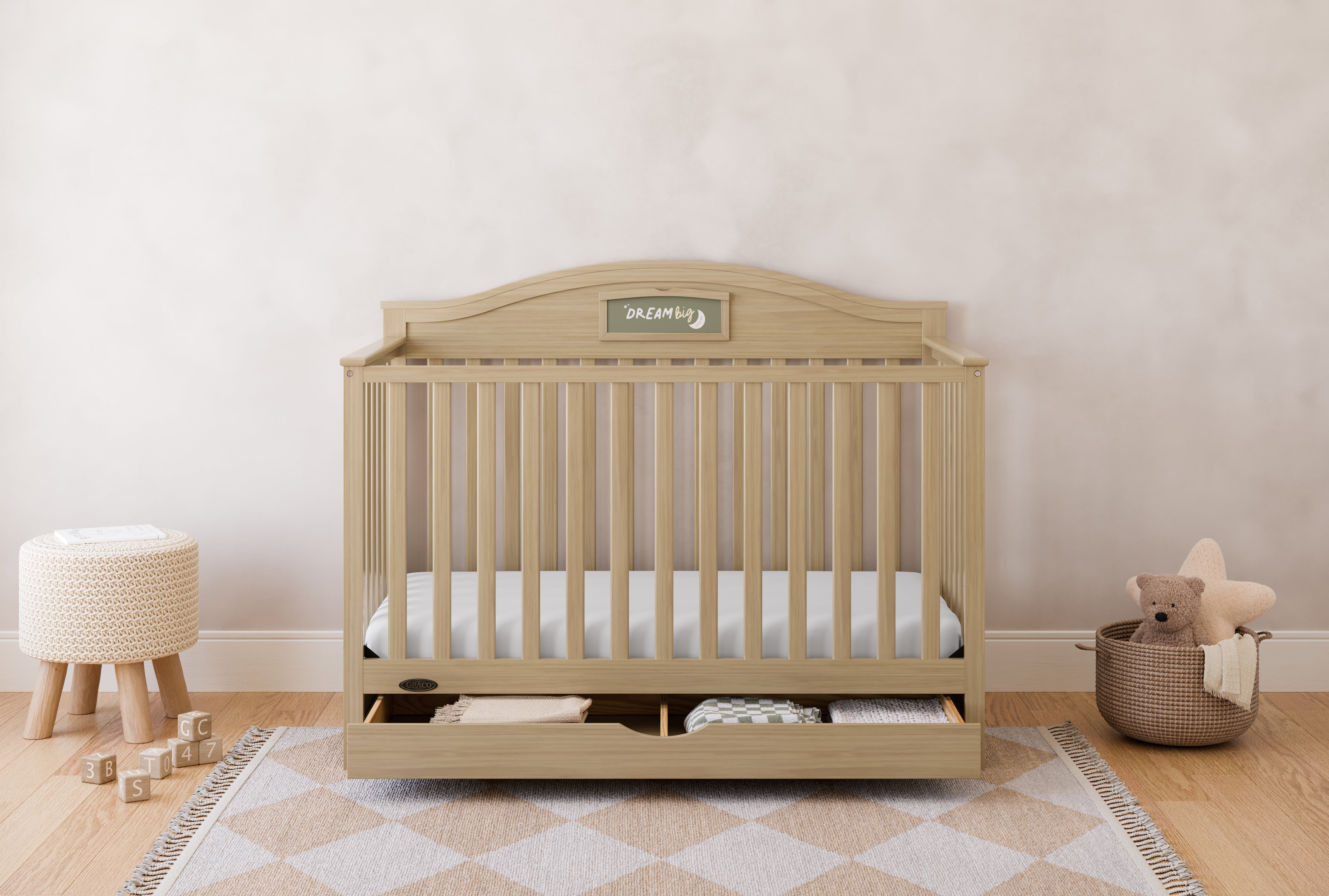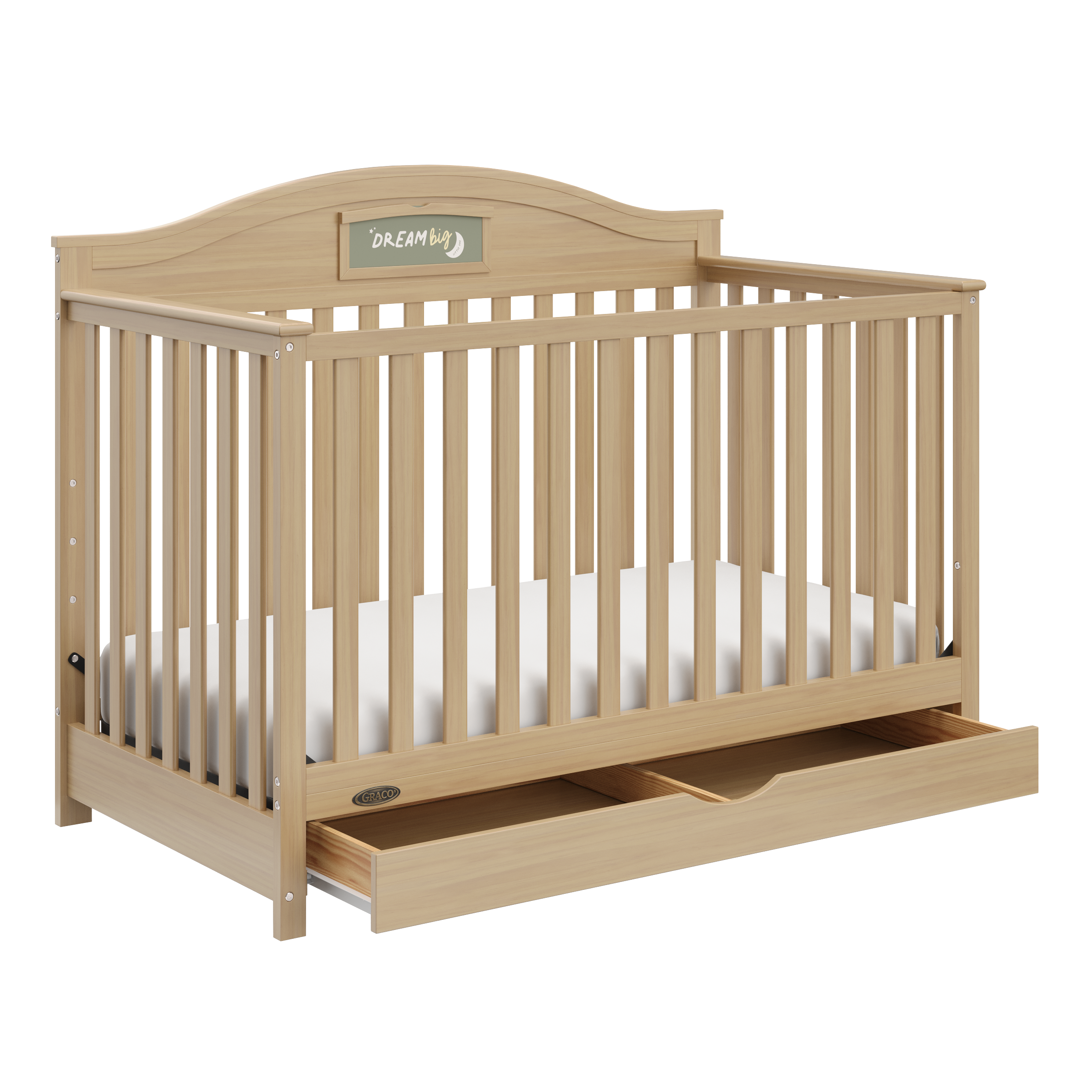 Customize, personalize, organize, and tell your story with the Graco® Story Customizable Convertible Crib with Drawer.