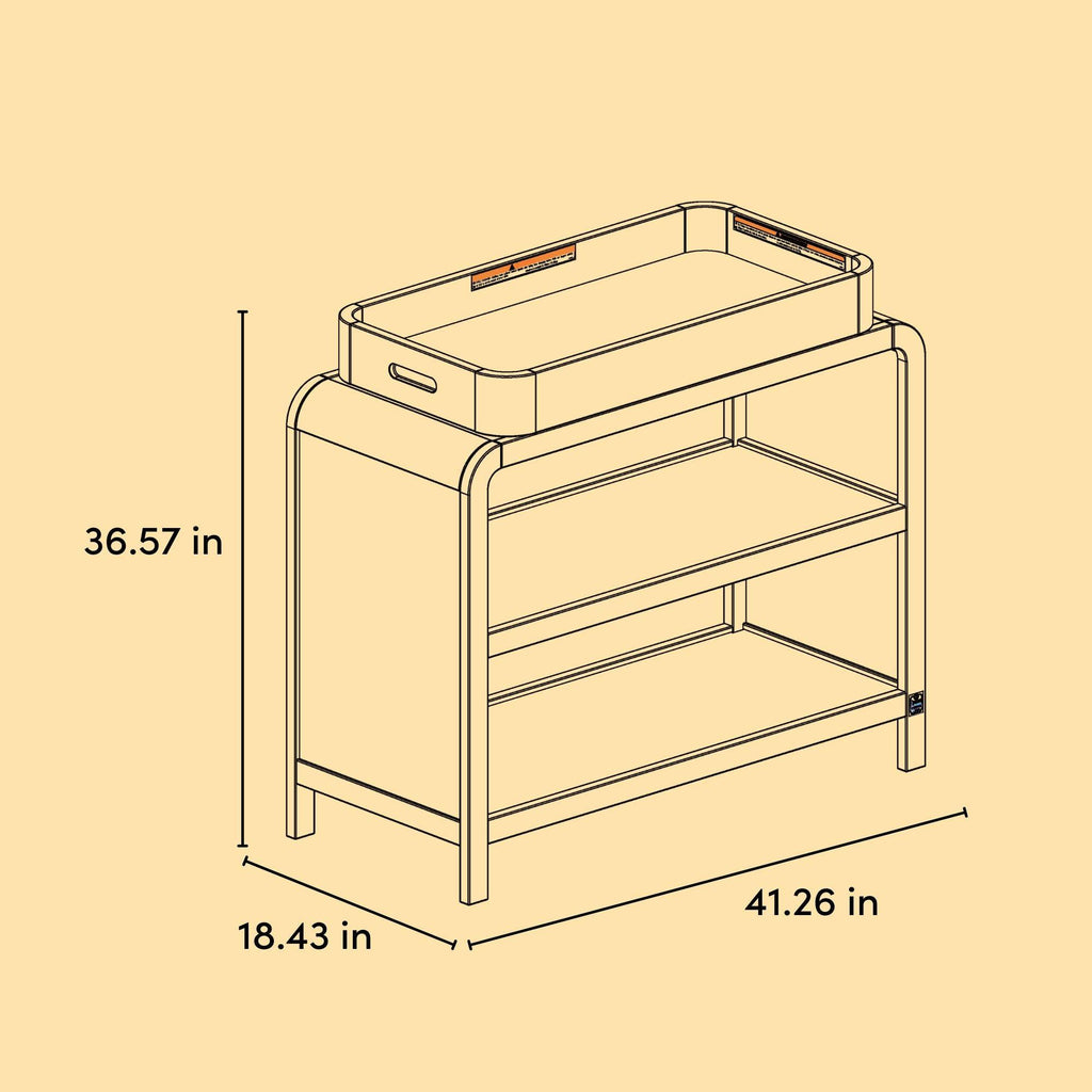 Changing table with storage shelves: Our changing table includes two (2) open storage shelves, allowing you to keep your changing essentials nearby and organized.