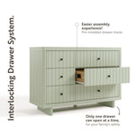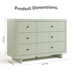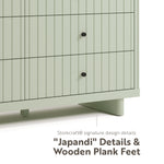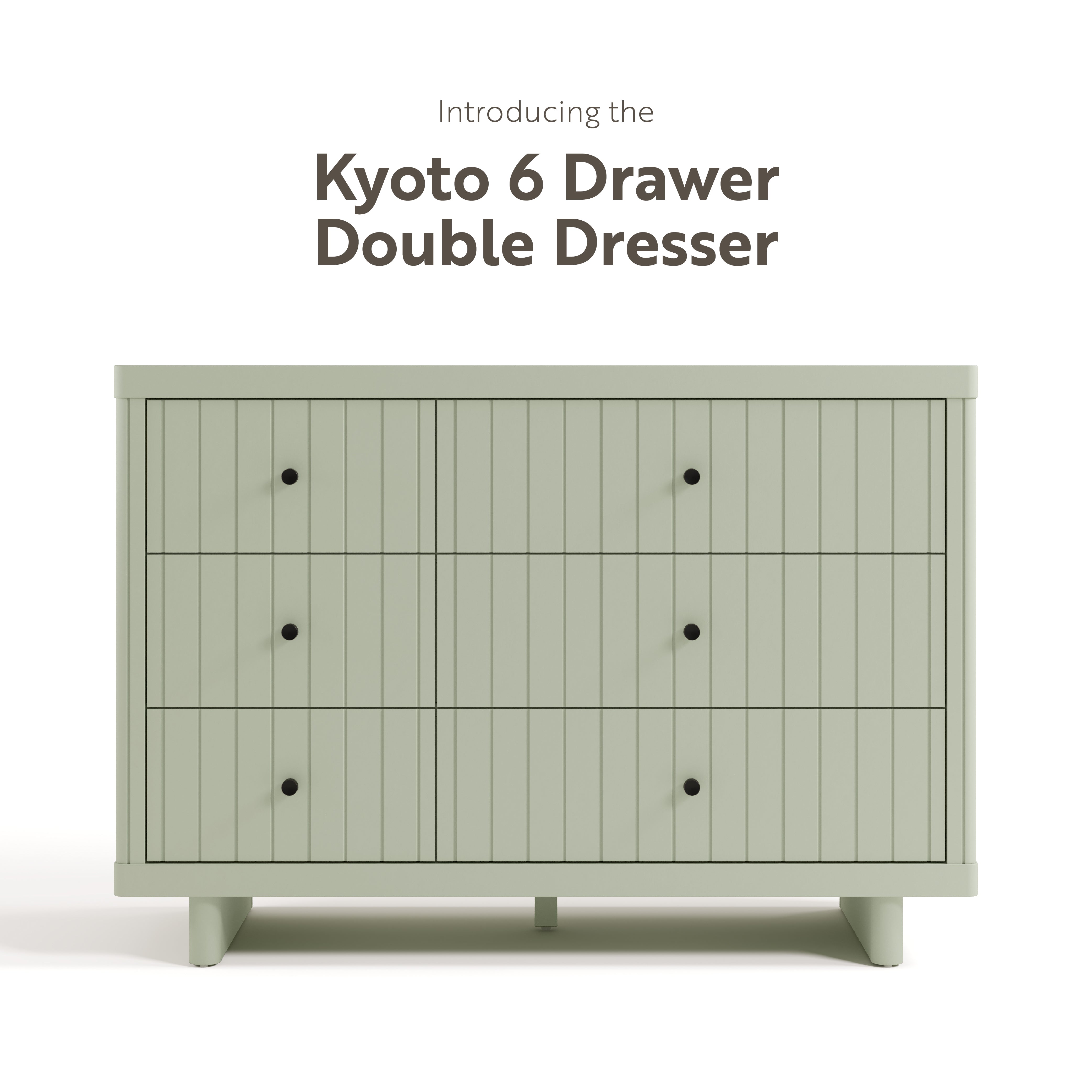 Introducing the iconic Storkcraft® Kyoto 6 Drawer Double Dresser — part of Storkcraft’s exclusive, ultra-premium “Art of Nursery” Collection. As part of Storkcraft’s “Art of Nursery” Collection, the Kyoto utilizes premium materials, designer details, and elegant metal hardware. The Kyoto embodies the ethos of “Japandi” (Japanese-Scandinavian) design, and features linear routed details and thick, chunky, wooden plank feet. As an ode to the Kyoto’s linear details, the Kyoto features ultra-premium, black metal knobs with linear bezels.