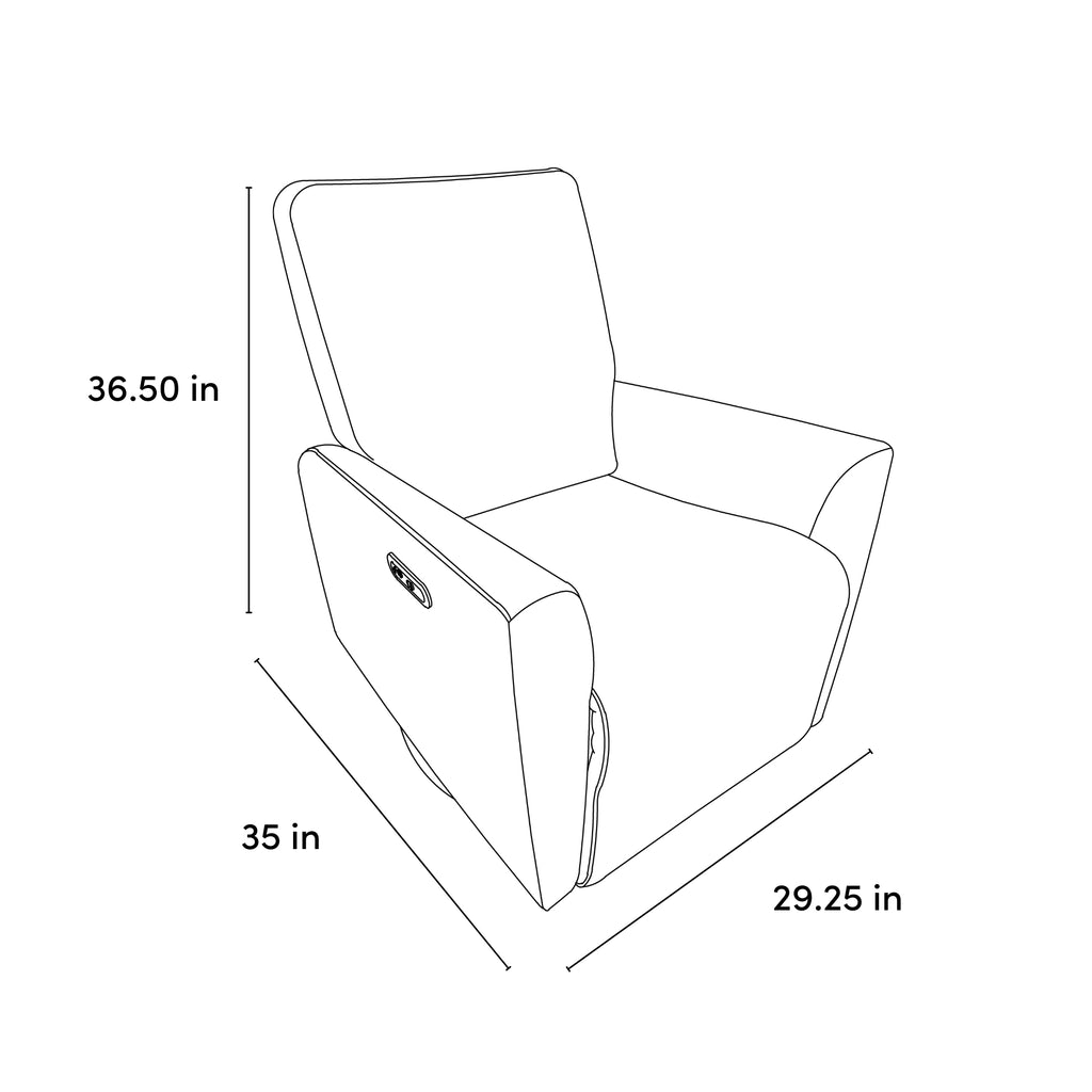Effortless, electronic reclining function: The Santorini® Power Recliner swivels, glides, and features an electronic “power recline” feature – so the chair does the work for you, and you can effortlessly recline (and sit back up) with the simple touch of a button.