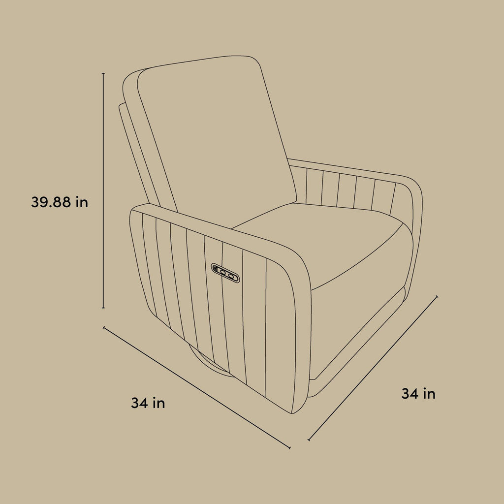 Effortless, electronic reclining function: The Kyoto Power Recliner swivels, glides, and features an electronic “power recline” feature – so the chair does the work for you, and you can effortlessly recline (and sit back up) with the simple touch of a button.