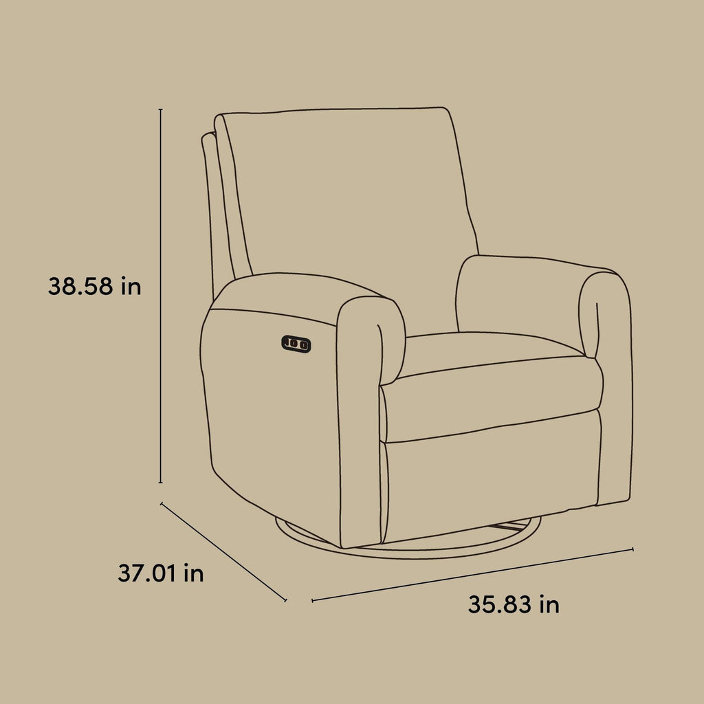 Effortless, electronic reclining function: The Santos Power Recliner swivels, glides, and features an electronic “power recline” feature – so the chair does the work for you, and you can effortlessly recline (and sit back up) with the simple touch of a button.