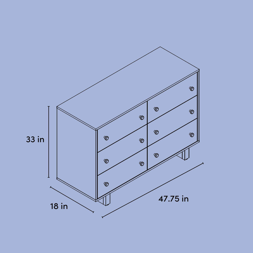 Introducing the Storkcraft® Texas 6 Drawer Dresser — a modern, minimalist dresser designed to keep your nursery organized while maintaining a stylish look that adapts easily to any nursery or kids’ bedroom. Its clean lines, chunky rectangular feet, square-edged shape, understated wooden double knobs, and spacious drawers create a sleek, timeless look that blends with a wide range of decoration styles. The Texas 6 Drawer Dresser includes six roomy storage drawers for organizing baby, kids, or household essentials.