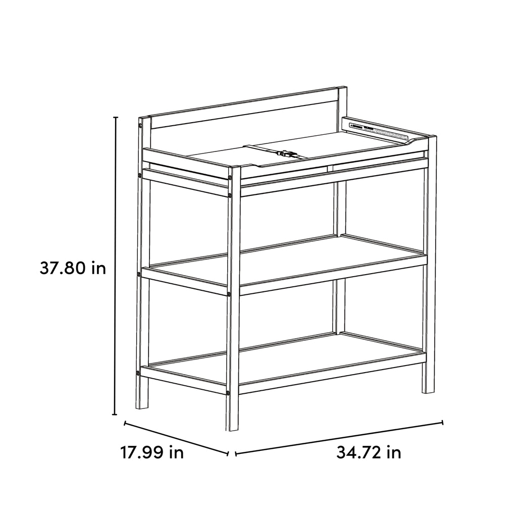 Changing table with storage shelves: Our changing table includes two (2) open storage shelves, allowing you to keep your changing essentials nearby and organized.